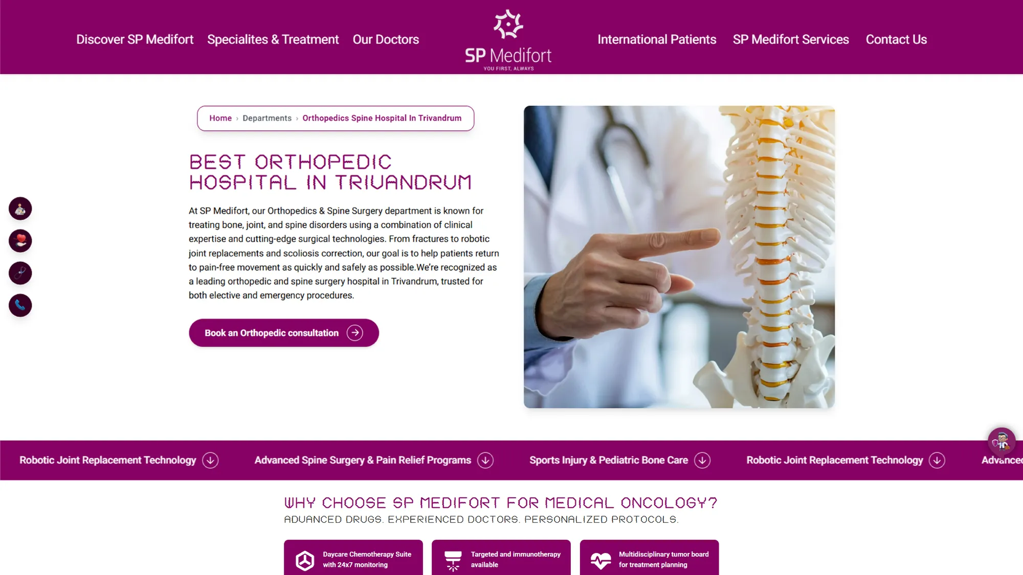 Content Marketing Success: Created targeted medical content focusing on specialty treatments, patient testimonials, and educational resources that positioned SP Medifort as a thought leader in South Kerala’s healthcare sector.